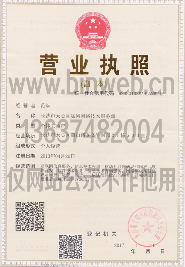 版權(quán)所有 © 長(zhǎng)沙市天心區(qū)斌網(wǎng)網(wǎng)絡(luò)技術(shù)服務(wù)部    湘公網(wǎng)安備 43010302000270號(hào)  統(tǒng)一社會(huì)信用代碼:92430103MA4LAMB24R  網(wǎng)站ICP備案號(hào):湘ICP備13006070號(hào)-2