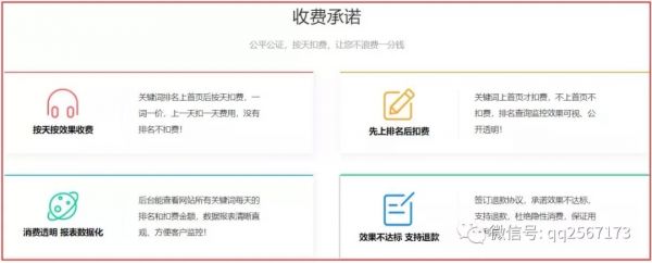 標(biāo)志一:按天扣費(fèi);標(biāo)志二:預(yù)存款項(xiàng),先上排名后扣費(fèi);標(biāo)志三:達(dá)不到排名,支持退款,當(dāng)然還包括所謂的“7天上排名”,以及‘前50-100’排名的都可以刷首頁,甚至保證前三名。