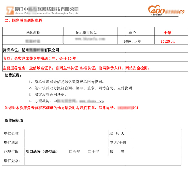 2、我方通知客戶都只會是以前為你一對一的服務專員才會與貴公司對接辦理網(wǎng)站續(xù)費事務,所以陌生人員與您聯(lián)系說域名網(wǎng)站到期的都請謹防被騙。