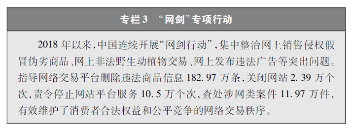 規(guī)范網(wǎng)絡(luò)交易活動。讓網(wǎng)絡(luò)交易活動在規(guī)范中運行,是營造良好網(wǎng)絡(luò)市場環(huán)境、維護廣大網(wǎng)絡(luò)交易主體權(quán)益的必然要求。開展“網(wǎng)劍行動”,集中治理網(wǎng)上銷售侵權(quán)假冒偽劣商品違法行為,重拳打擊網(wǎng)上非法交易野生動植物及其制品活動。嚴格落實網(wǎng)絡(luò)平臺責任,強化互聯(lián)網(wǎng)廣告監(jiān)管。針對“直播帶貨”、微店營銷等新型網(wǎng)絡(luò)交易形式,嚴管網(wǎng)絡(luò)招徠渠道,查處多家涉嫌違法網(wǎng)站和平臺用戶。針對網(wǎng)絡(luò)傳銷行為開展專項行動,對網(wǎng)絡(luò)購物型傳銷、網(wǎng)絡(luò)投資理財型傳銷、網(wǎng)絡(luò)創(chuàng)業(yè)型傳銷,實施重點打擊查處。通過一系列執(zhí)法,重點領(lǐng)域、重點主體、重點形式的網(wǎng)絡(luò)交易活動得到有效規(guī)范。